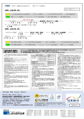 本旅行は、事前申込制による先着順とさせていただいておりますので、ご希望の方はお早めにお取引店までお申し出願います。ぜひこの機会にご検討ください。