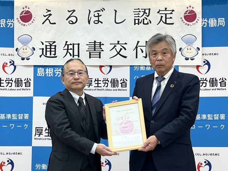 「えるぼし(3つ星)」「しまね女性の活躍応援企業」「こっころカンパニー」の3つの認定を取得しました ―女性活躍やワーク・ライフ・バランス実現への取り組みをさらに推進します―
