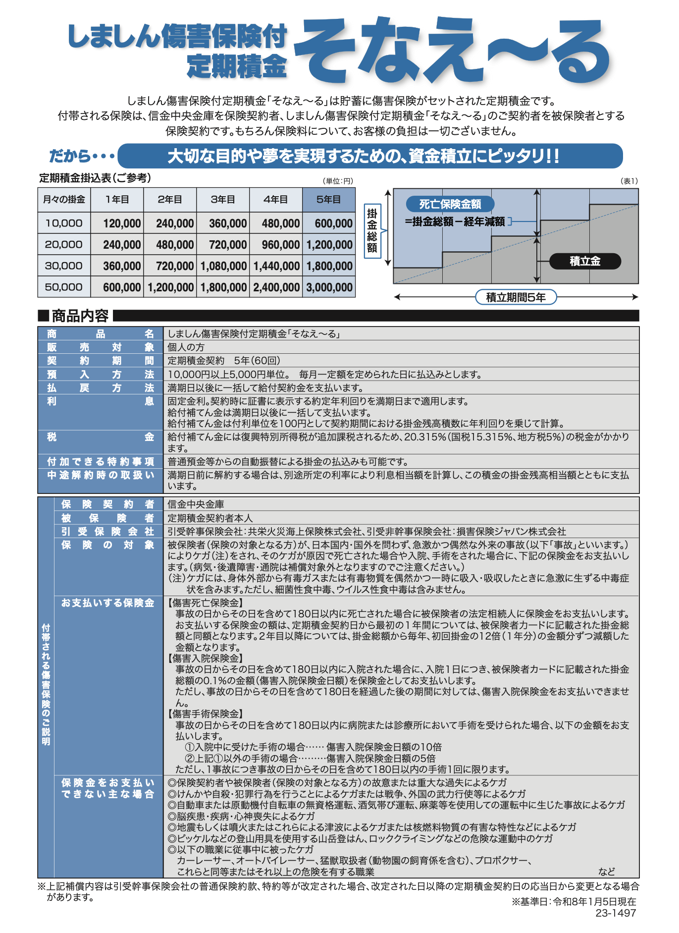 しましん傷害保険付定期積金「そなえ~る」の発売について