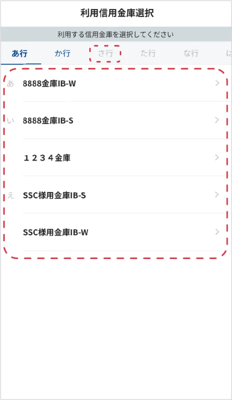 [さ行]をタップして、一覧から[しまね信用金庫]をタップ
